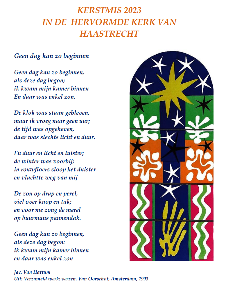 maandag 25 december 2023 om 10.00 uurKerstochtenddienstVoorganger(s): ds. Jaap Huttenga uit Zeist Ouderling(en): Jan van den Berg Organist: Bas Koster