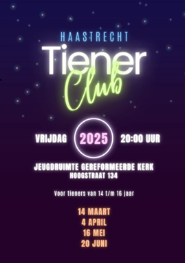 Ben jij tiener en wil je eens komen kennis maken? Voel je welkom op bovenstaande data om 20.00 uur in de jeugdruimte van de Gereformeerde Kerk. | ||